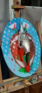 65x45cm2 (oval), Acrylic on canvas and boar skull